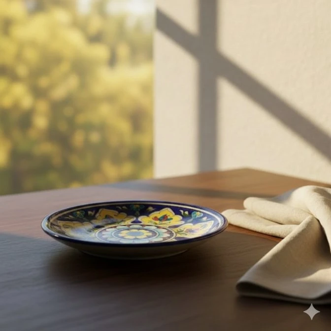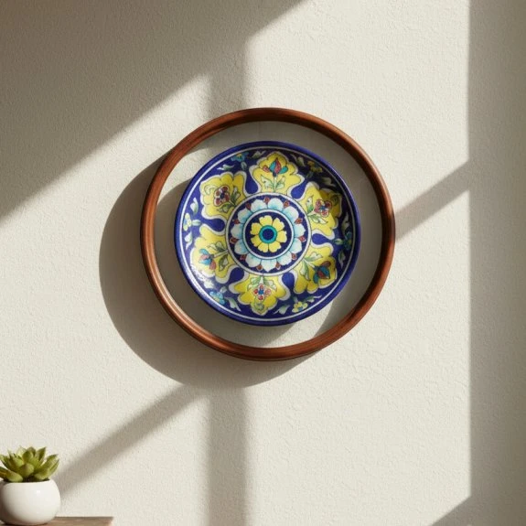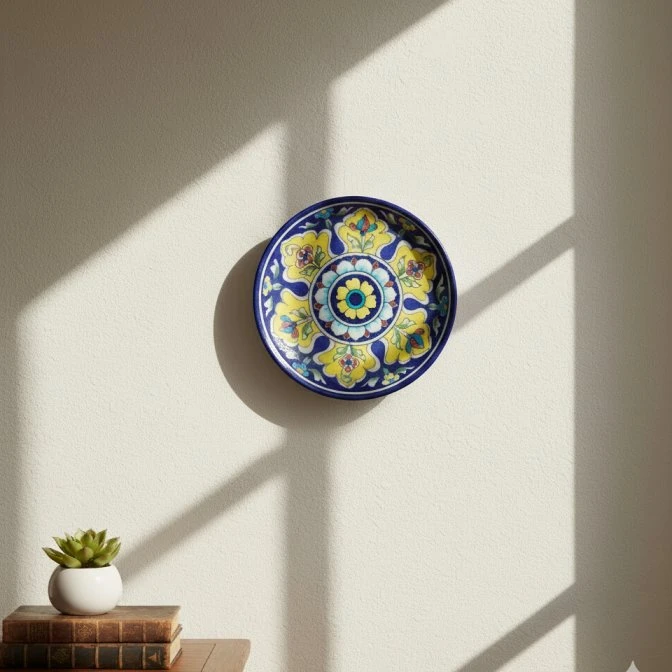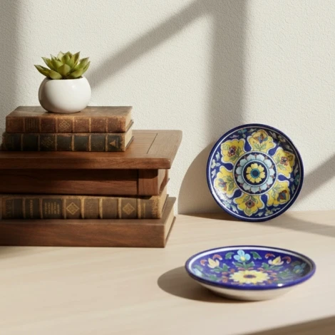 Perfect for wall décor, table centerpieces, or as a thoughtful gift, this plate is a fine example of Rajasthani blue pottery, one of India’s most celebrated handicrafts. Each plate is individually hand-glazed and painted, ensuring no two are exactly alike — a true collector's delight