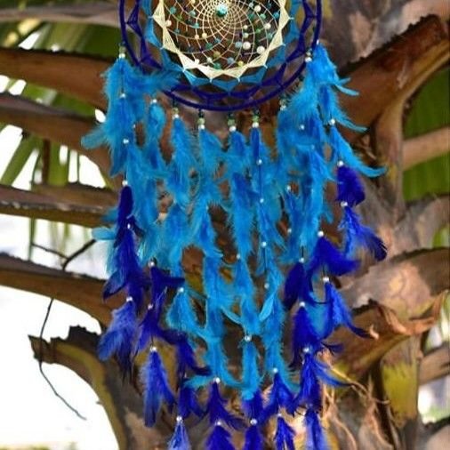 Crafted with loving detail using natural materials, the Blue Love Dreamcatcher blends bohemian essence and coastal serenity—its wool-wrapped ring and delicate weaving create a graceful flow of texture.
