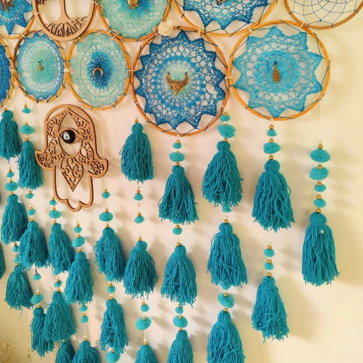 ✨ Handcrafted Elegance – Each dreamcatcher is carefully made with crochet netting, colorful threads, wooden rings, and artificial flowers, giving it a truly artisanal charm.