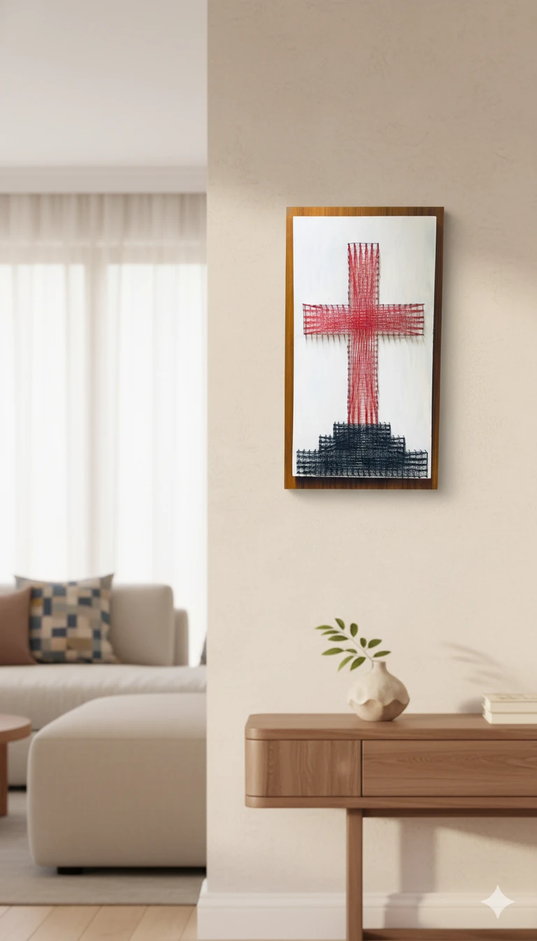Inspired by the profound peace and sacred atmosphere of the church, this exclusive thread art piece serves as a powerful and tranquil focal point for your home, office, or private prayer space. Created under the shadow of divine presence, every thread woven is a testament to devotion.