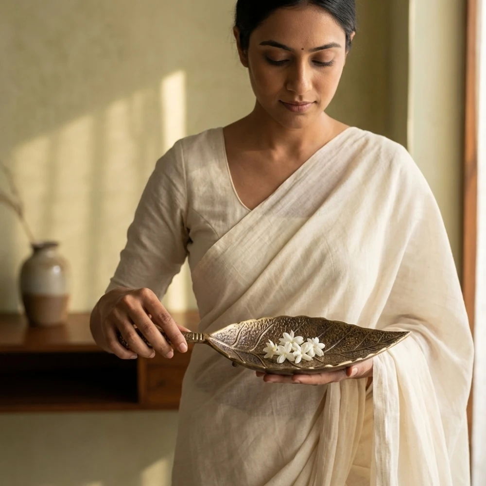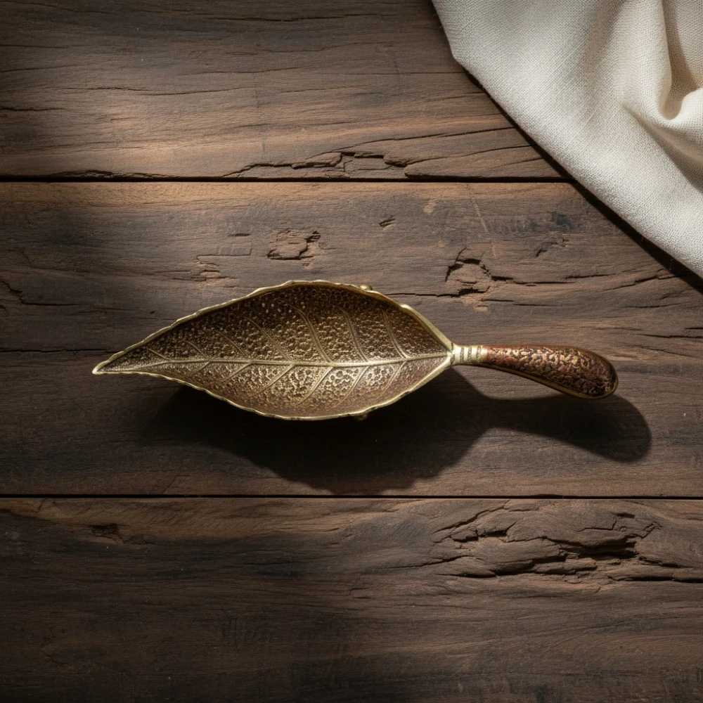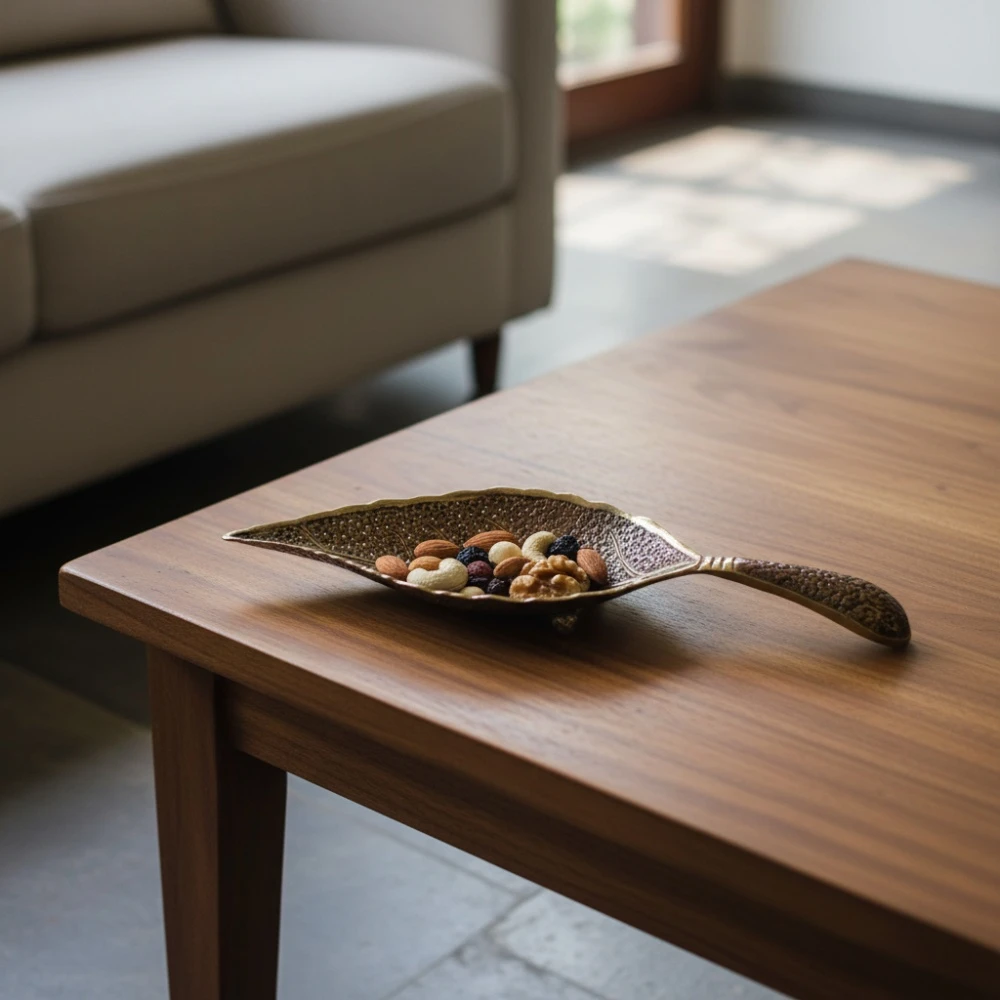 The premium metallic finish makes it suitable for dining tables, coffee tables, living room décor, and kitchen displays. Its unique leaf shape makes it both functional and decorative.