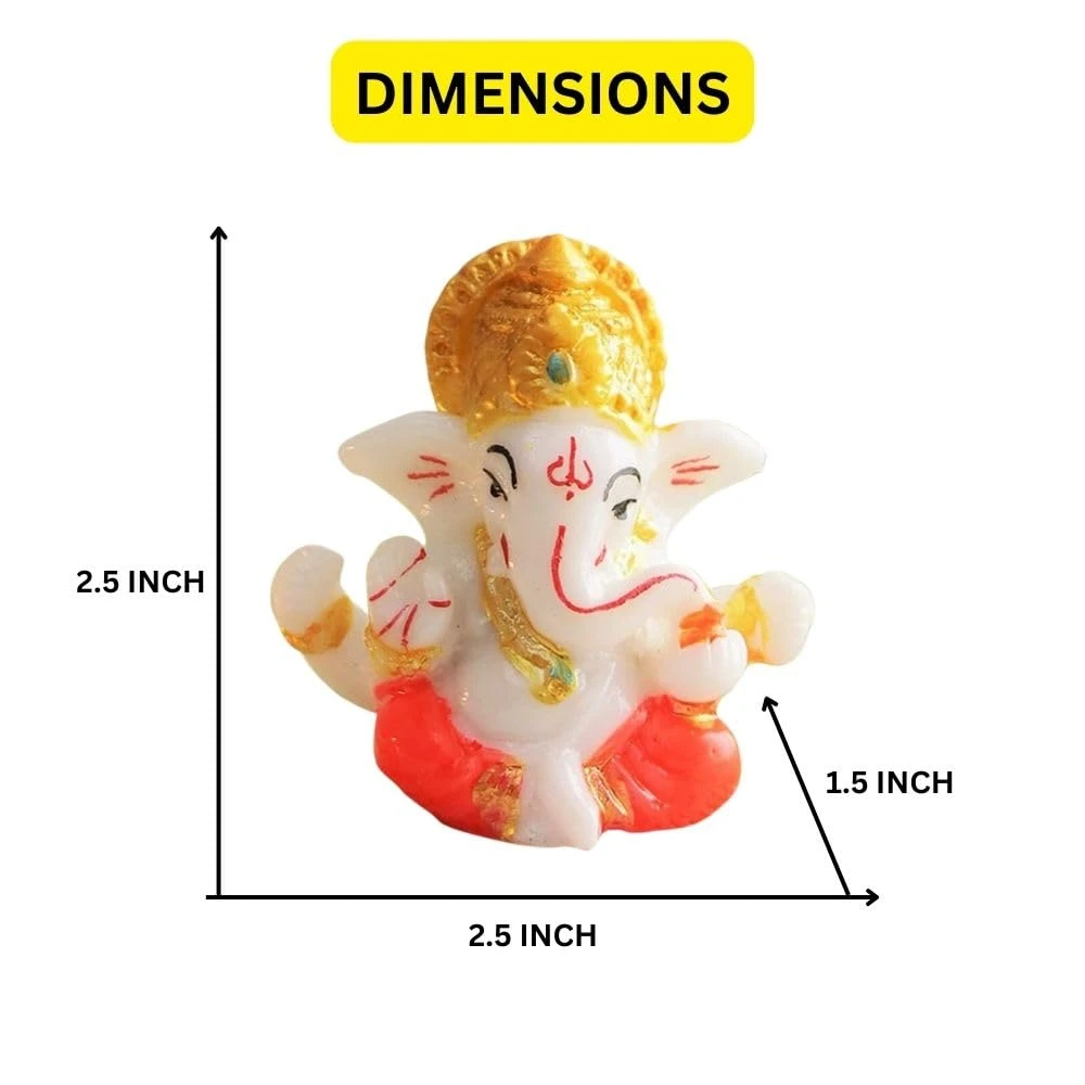 Bring divine elegance to your sacred space with this exquisite set of 10 Lord Ganesha idols. Each beautifully crafted figurine measures 6.35 x 6.35 x 3.81 centimeter (2.5 x 2.5 x 1.5 inches), making them perfect for small altars, festive decorations, or as thoughtful gifts. The idols feature a pristine white base adorned with striking gold accents, creating a sophisticated and serene aesthetic. The detailed craftsmanship captures the beloved deity's characteristic features, including the crown, trunk, and peaceful expression. The red base adds a traditional touch to the overall design. These compact Ganesha idols are ideal for placing in your prayer room, study desk, or as decorative pieces during festivals like Ganesh Chaturthi. The set of 10 identical pieces allows you to share the blessings with family and friends or create an impressive display arrangement. Perfect for both devotional purposes and home décor, these carefully sized figurines bring an auspicious presence to any setting.