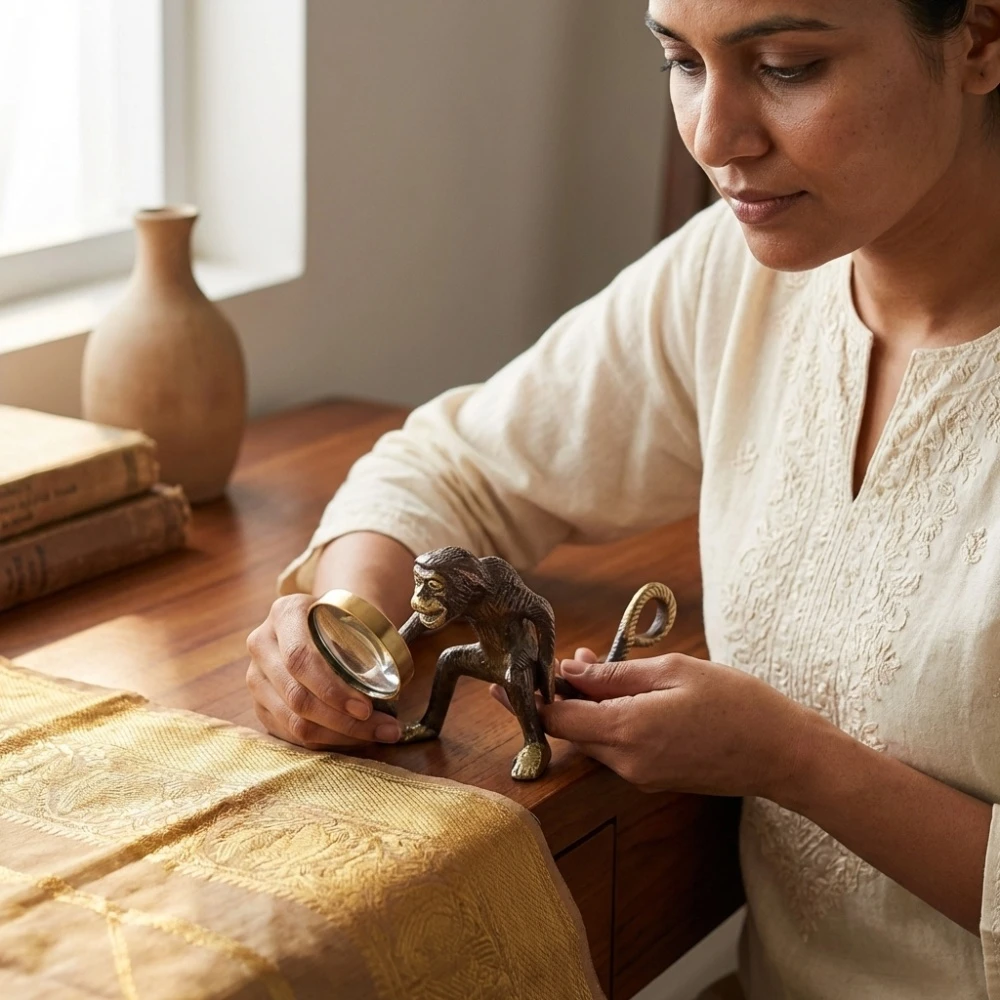 Add a touch of creativity and humor to your décor with this Decorative Monkey Showpiece (5 Inch). Designed with a playful monkey holding a magnifying glass, this figurine represents curiosity, intelligence, and attention to detail.