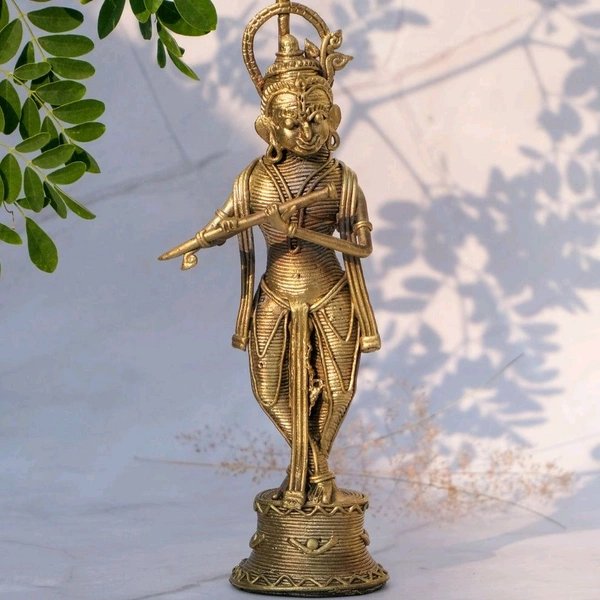 Each Dhokra artifact is a labor of love, meticulously created by skilled artisans using a time-honored lost-wax technique. This Standing Krishna idol is no exception, offering unparalleled craftsmanship and a story that connects deeply with India's rich cultural roots.
