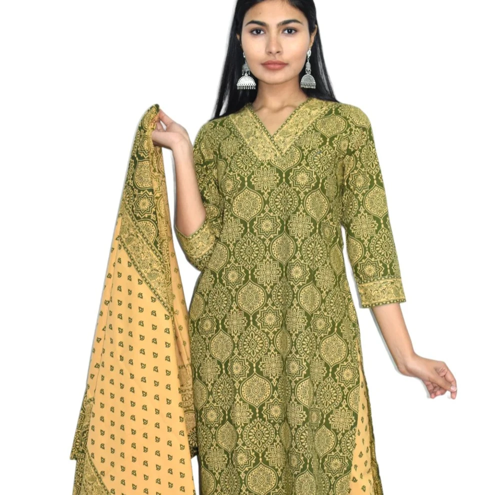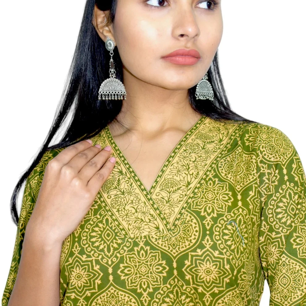 Features a vivid green base colour with traditional Sanganeri block‑print motifs — an elegant fusion of heritage and style.