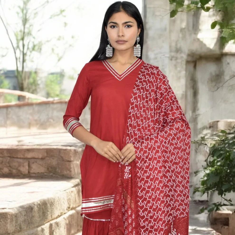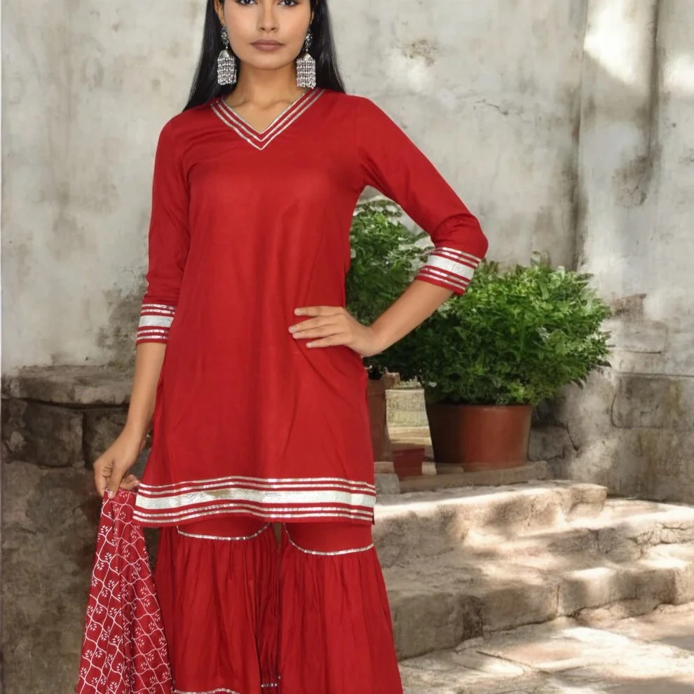 Designed with silver gota-lace detailing for subtle shimmer and a festive finish.