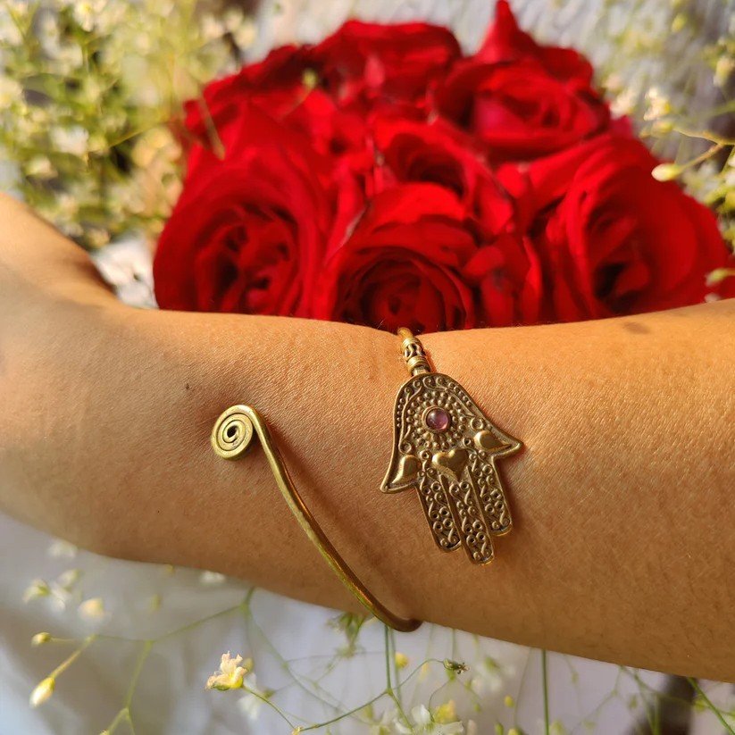 Hamsa Hand Cuff Bangle – a symbolic accessory representing protection, good fortune, and spiritual balance.
