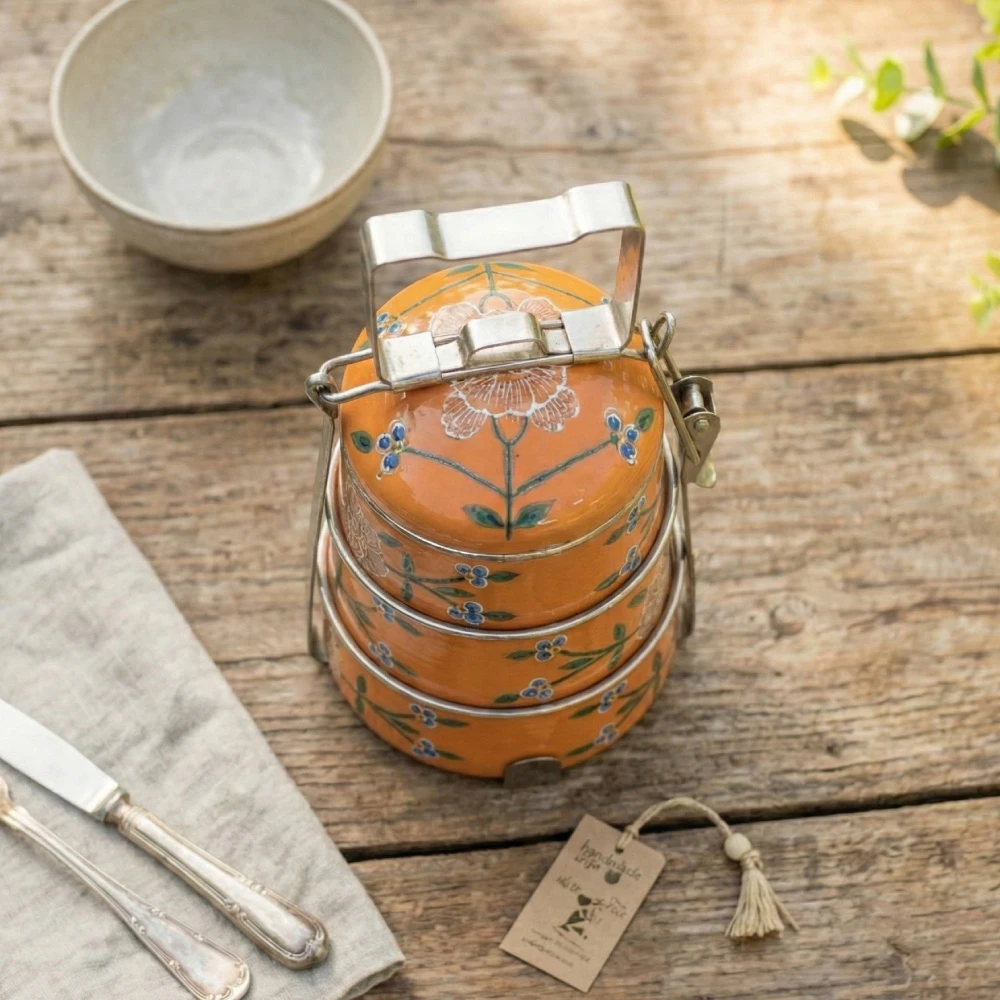 Elevate your everyday dining experience with our exquisite Hand-Painted Tiffin collection. Each piece is a canvas of artistic expression, meticulously hand-painted by skilled artisans. Our Hand-Painted Tiffins not only add a touch of vibrant elegance to your meals but also celebrate the rich heritage of traditional artistry. Crafted with care and precision, these unique pieces are both functional and aesthetically pleasing, making them a perfect blend of tradition and modernity. Explore our collection and bring a burst of colors and creativity to your dining rituals.