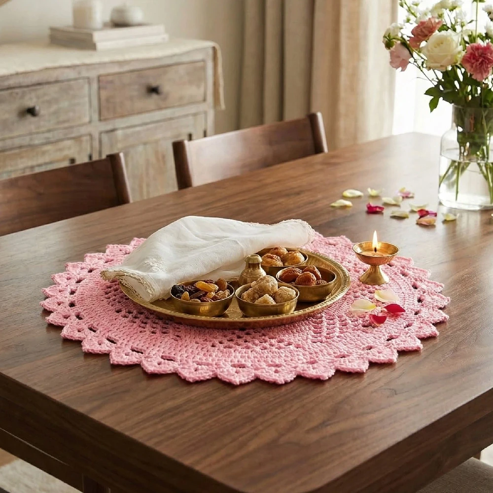 Table Décor: Acts as a striking centerpiece doily for dining or coffee tables.