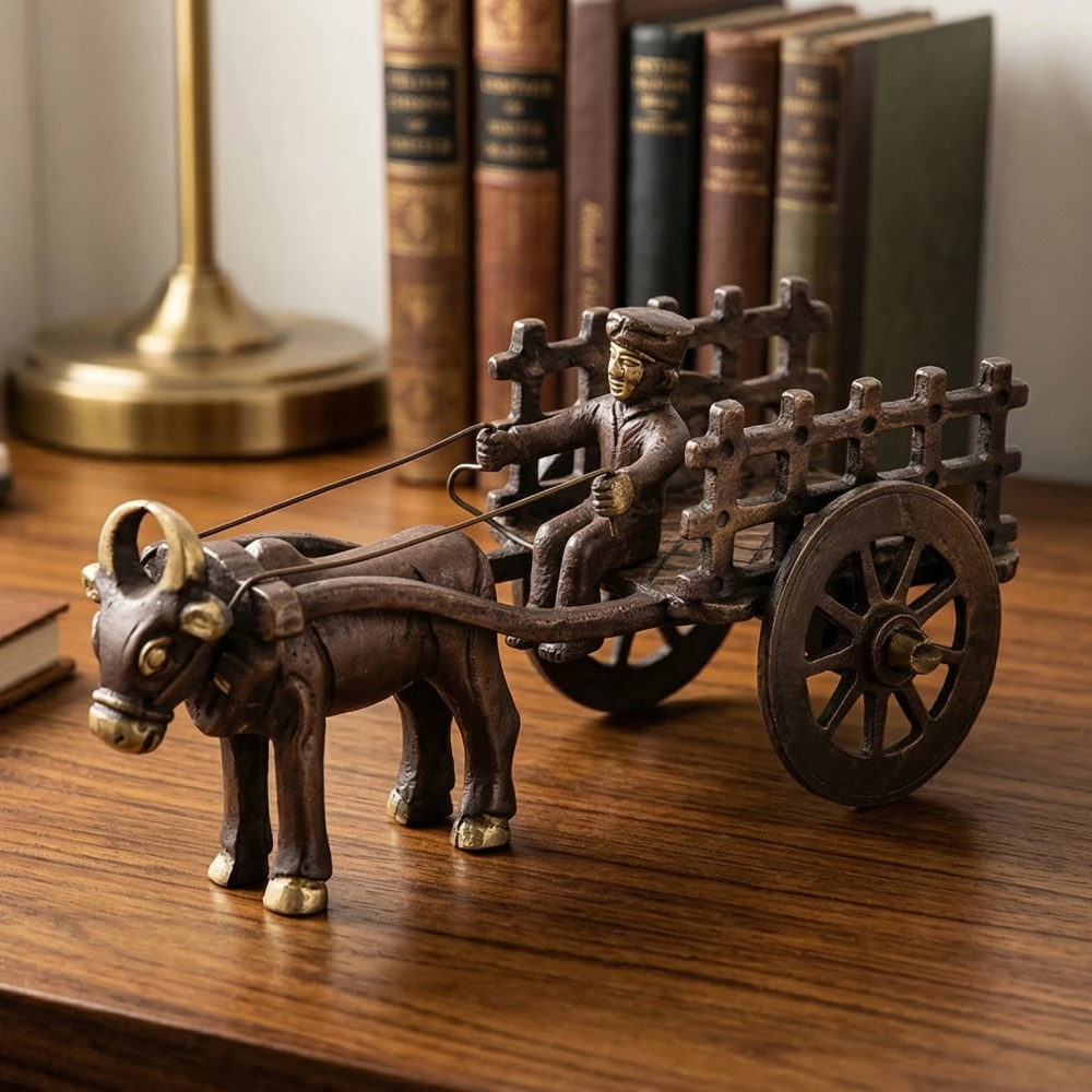 This miniature sculpture beautifully showcases intricate detailing on the bullock, wheels, and cart structure, reflecting the skill of Indian artisans. Its compact design makes it perfect for office desks, study tables, shelves, or decorative displays, adding a vintage artistic touch to your space.