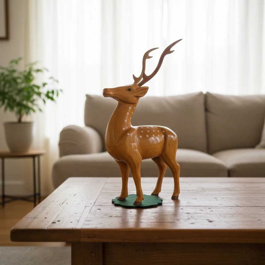 Perfect for nature lovers and art enthusiasts, this wooden deer showpiece also makes a thoughtful gift for housewarmings, festive occasions, and corporate gifting.