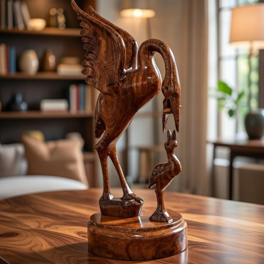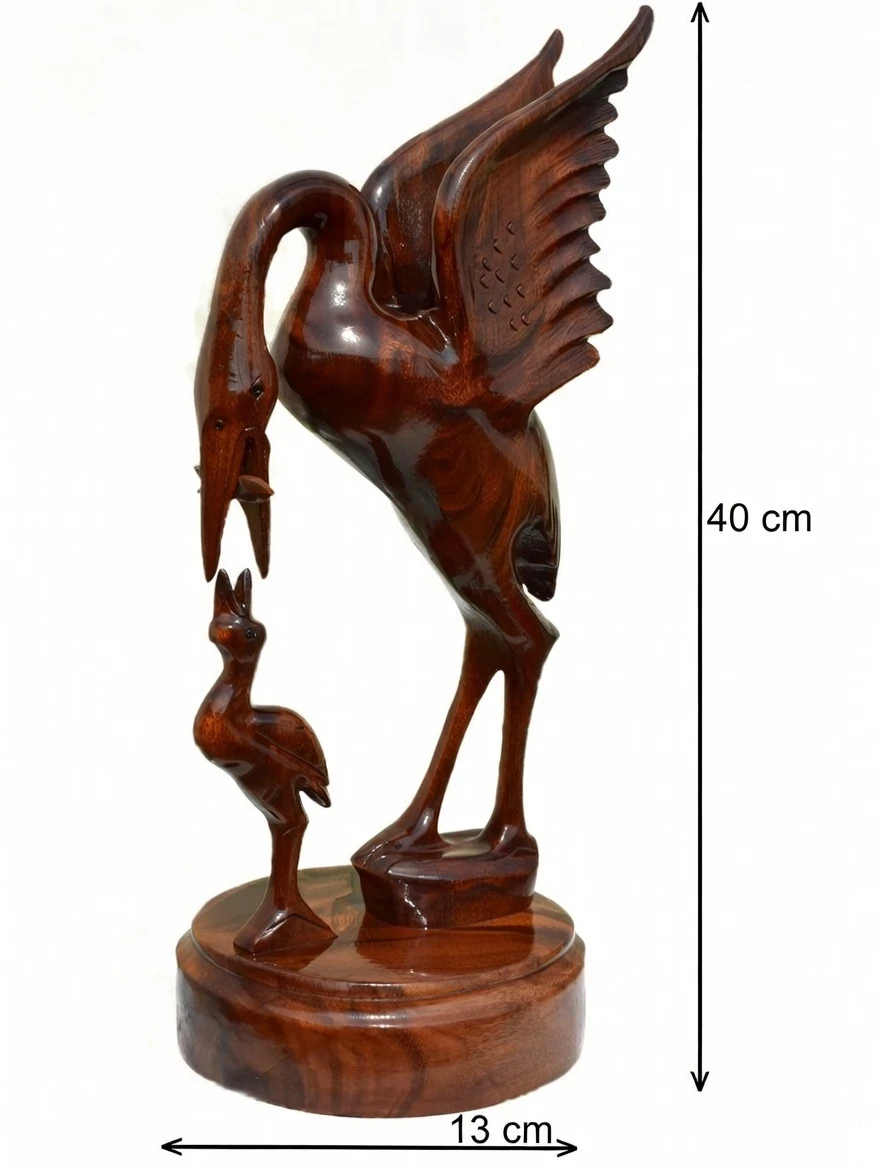Add a graceful artistic accent to your interiors with this Handcrafted Wooden Heron Showpiece, designed in a striking raised-wings posture. Skillfully carved by traditional artisans, this sculpture showcases fine detailing, smooth curves, and a rich natural brown polish that highlights the beauty of real wood. The elegant mother-and-chick composition symbolizes protection, care, and harmony, making it a meaningful décor piece for homes and offices alike.