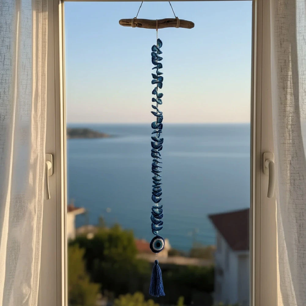 Visual Wind Chime: Adds aesthetic movement and calming blue tones to a quiet corner or balcony.