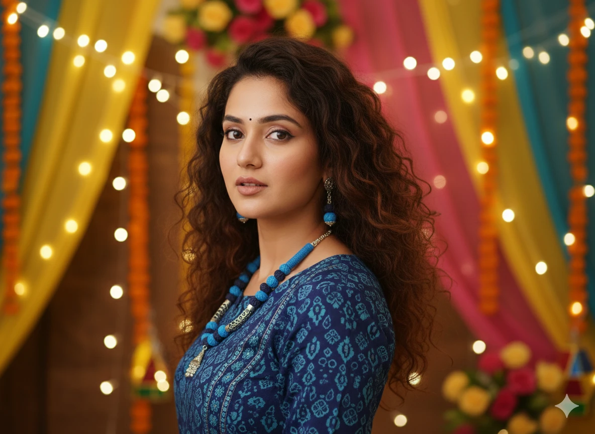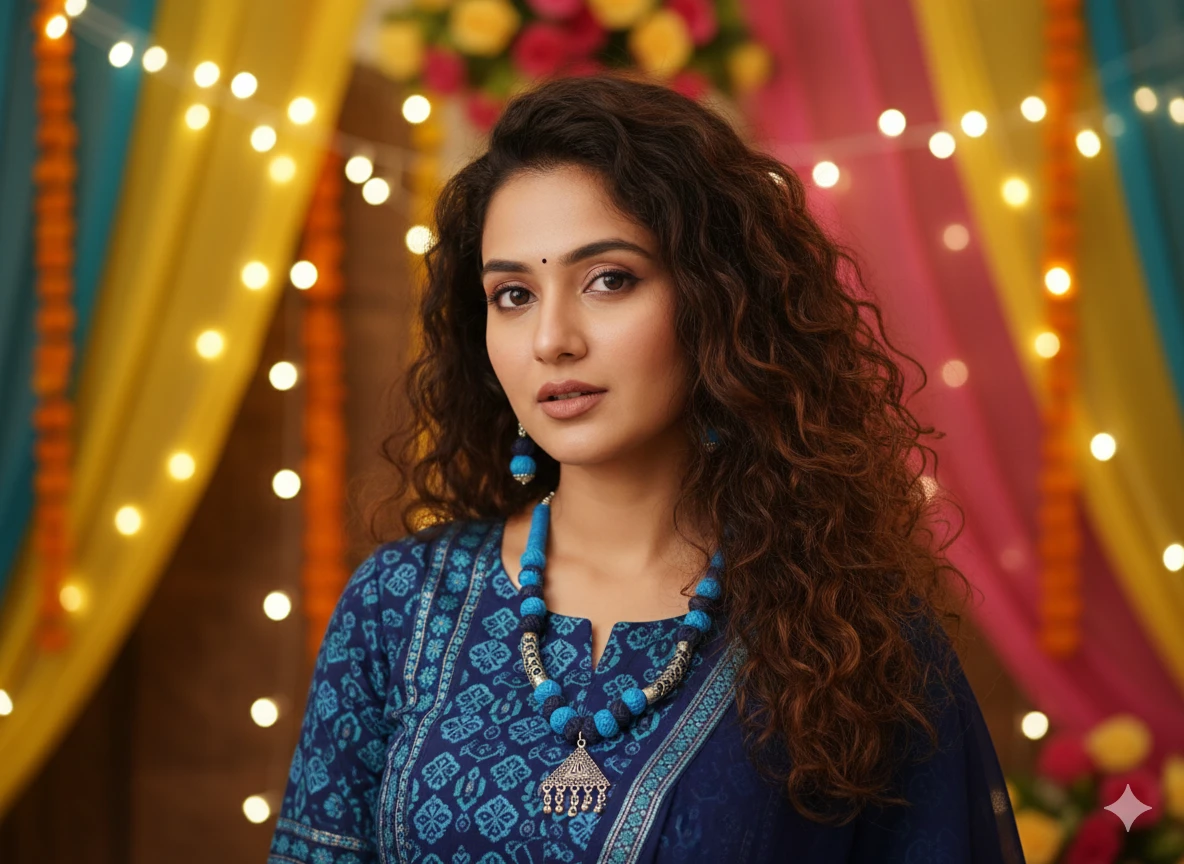 Header: Elevate Your Ethnic Look with Our Stunning Handcrafted Blue Beaded Jewelry Set