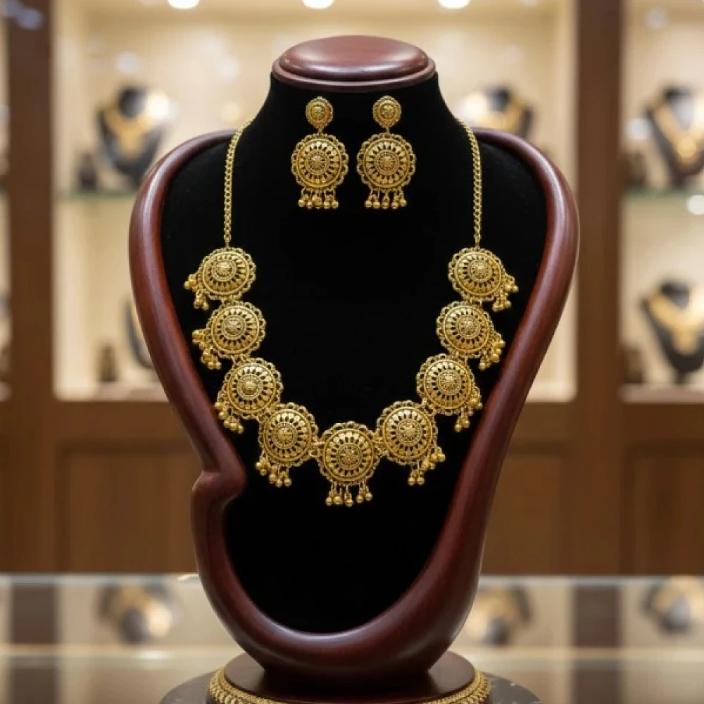 Embrace Timeless Elegance with Handcrafted Artistry Elevate your ethnic wardrobe with this stunning Handmade Golden Oxidized Jewellery Set. Crafted for the modern woman who loves a touch of tradition, this set features an intricate circular motif design adorned with delicate golden beads (ghungroos). Whether itβs a grand wedding or a festive party, this set ensures you stand out with a "super premium" look.
