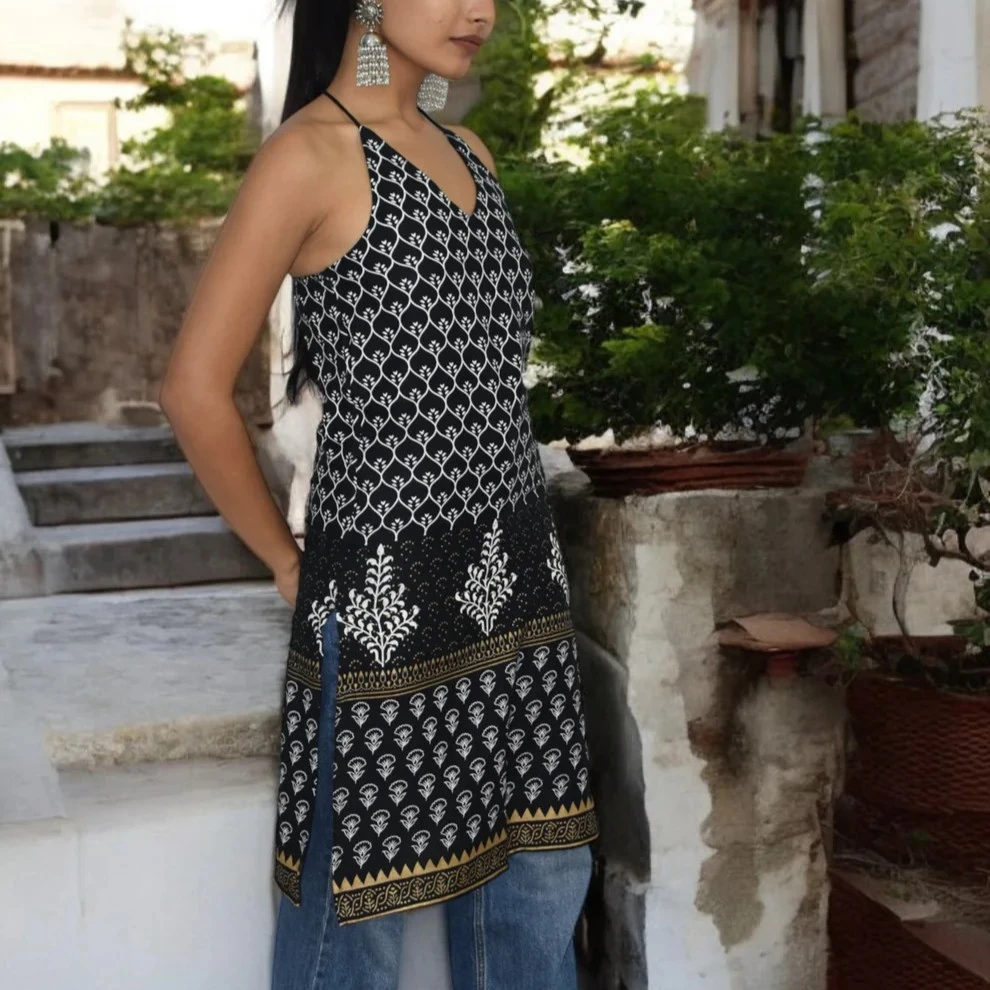 Stylish halter neckline adds a modern and chic twist to classic kurta wear.