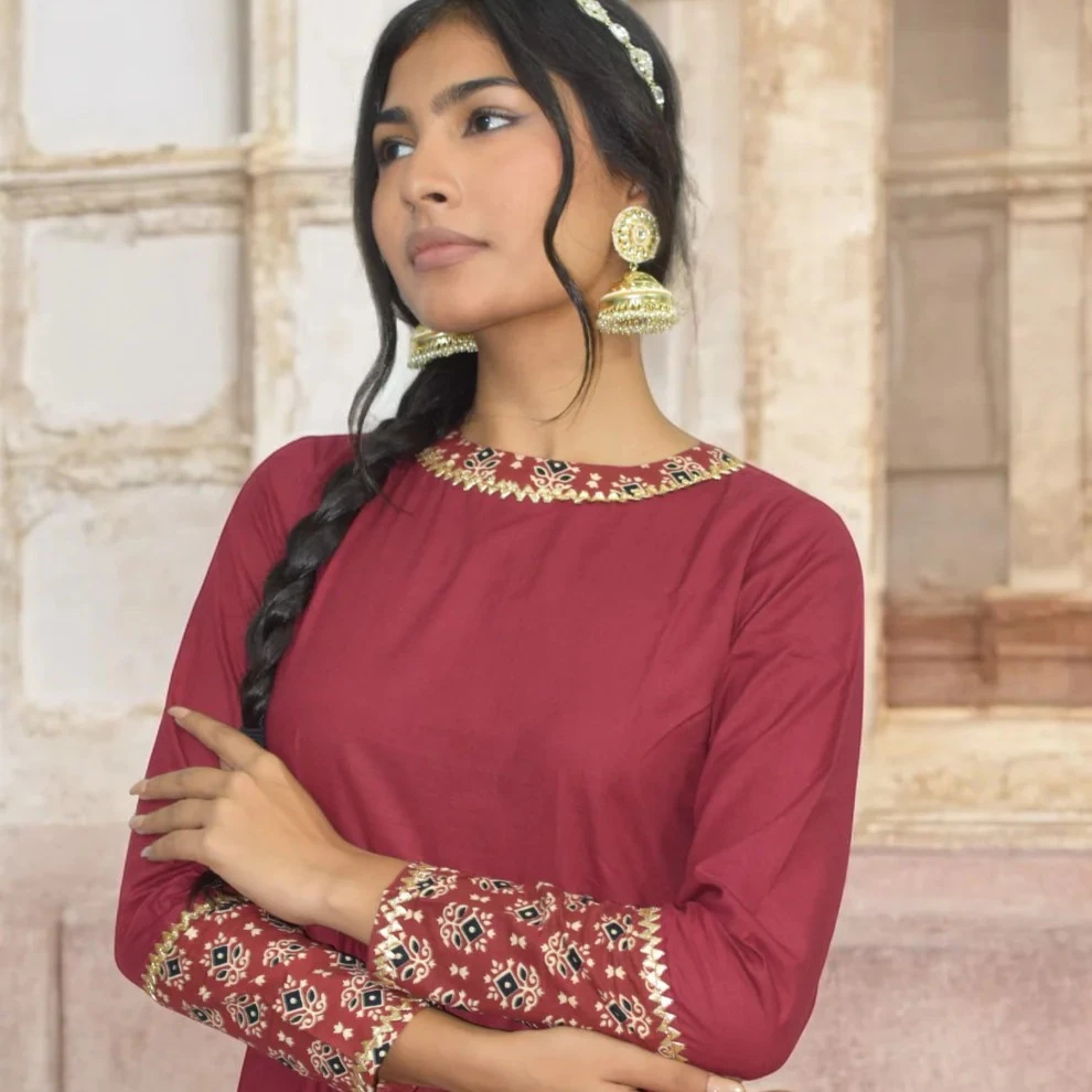 Elegant maroon colour that suits evening occasions and festive wear.