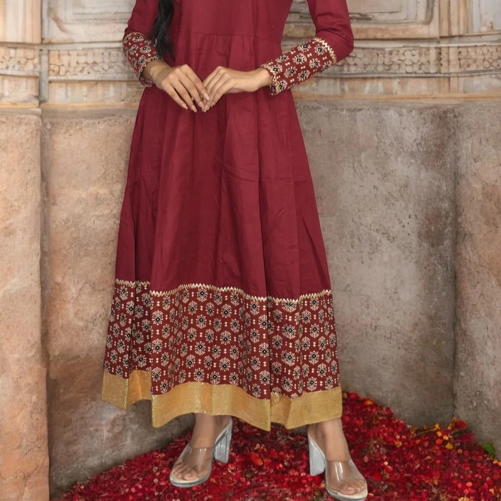 Floor-length Anarkali silhouette with graceful flare for a classic yet comfortable look.