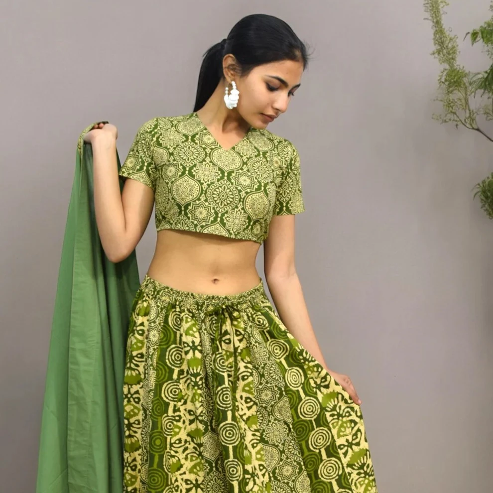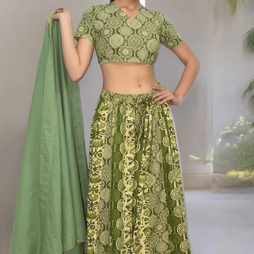 Set Includes: Top/blouse and matching lehenga skirt + dupatta is included