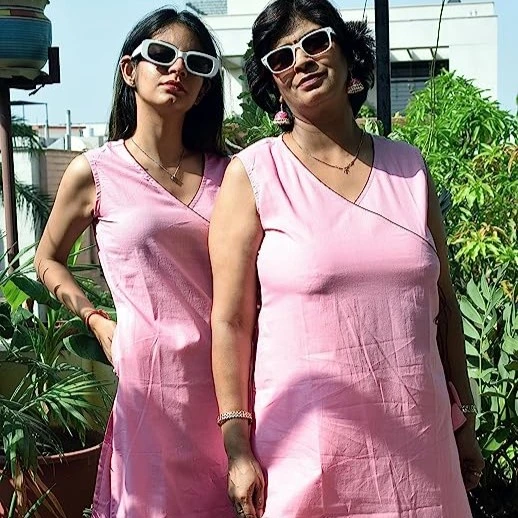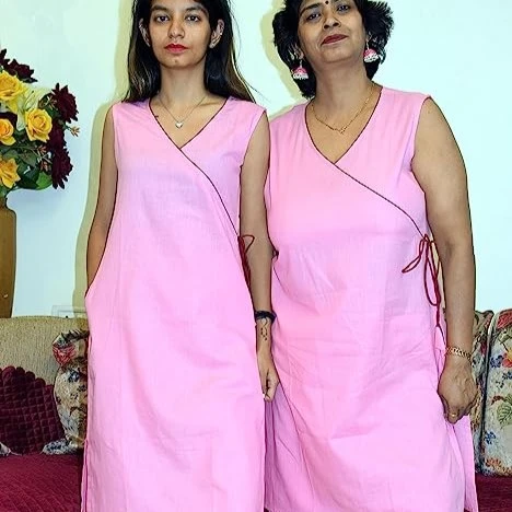 Colour & Design: Elegant pink hue with an angrakha-style top featuring wrap cross-over front and matching bottom for a coordinated look.