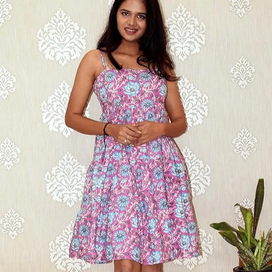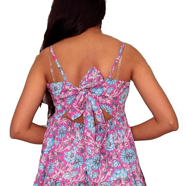 Sleeveless or cap-sleeve styling (subject to variant), allowing easy layering with a shrug or denim jacket.