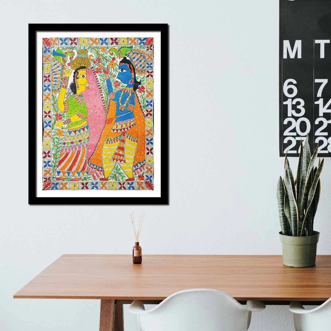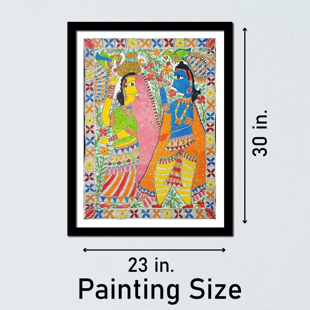 Bring home the divine charm of Indian folk culture with this Handcrafted Radha Krishna Madhubani Painting.