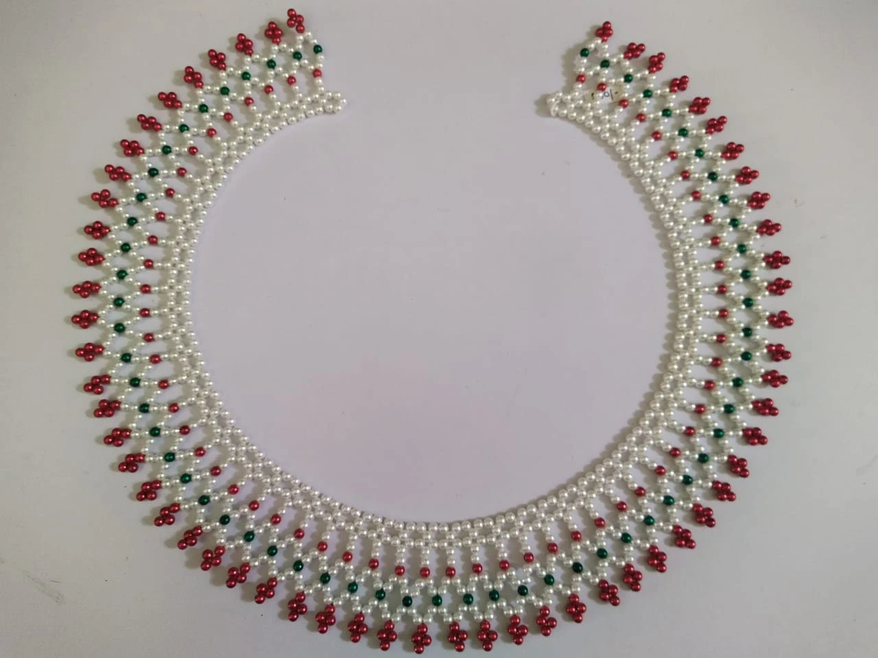 A Moti Mahirap (also known as a Pearl Beaded Rangoli or Taat Rangoli) is a handcrafted decorative item made from shiny plastic pearl beads (moti) arranged into intricate patterns. "Mahirap" is a traditional term for a decorative, often floral or geometric design, and "moti" refers to the beads used.