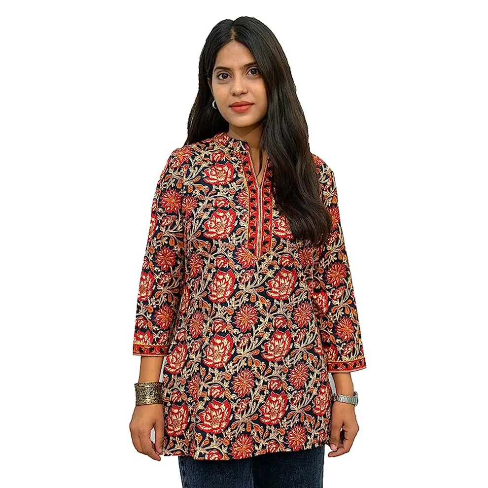 Design: Short kurta with traditional Kalamkari hand block prints.