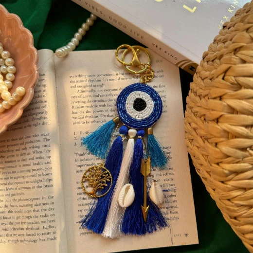 The Serene Eye Charm features a protective evil eye, symbolizing good luck, along with a tree of life and arrow, representing growth and direction. Crafted from high-quality materials, this charm serves as a reminder of positive energy and can be worn as a necklace or bracelet for added versatility.