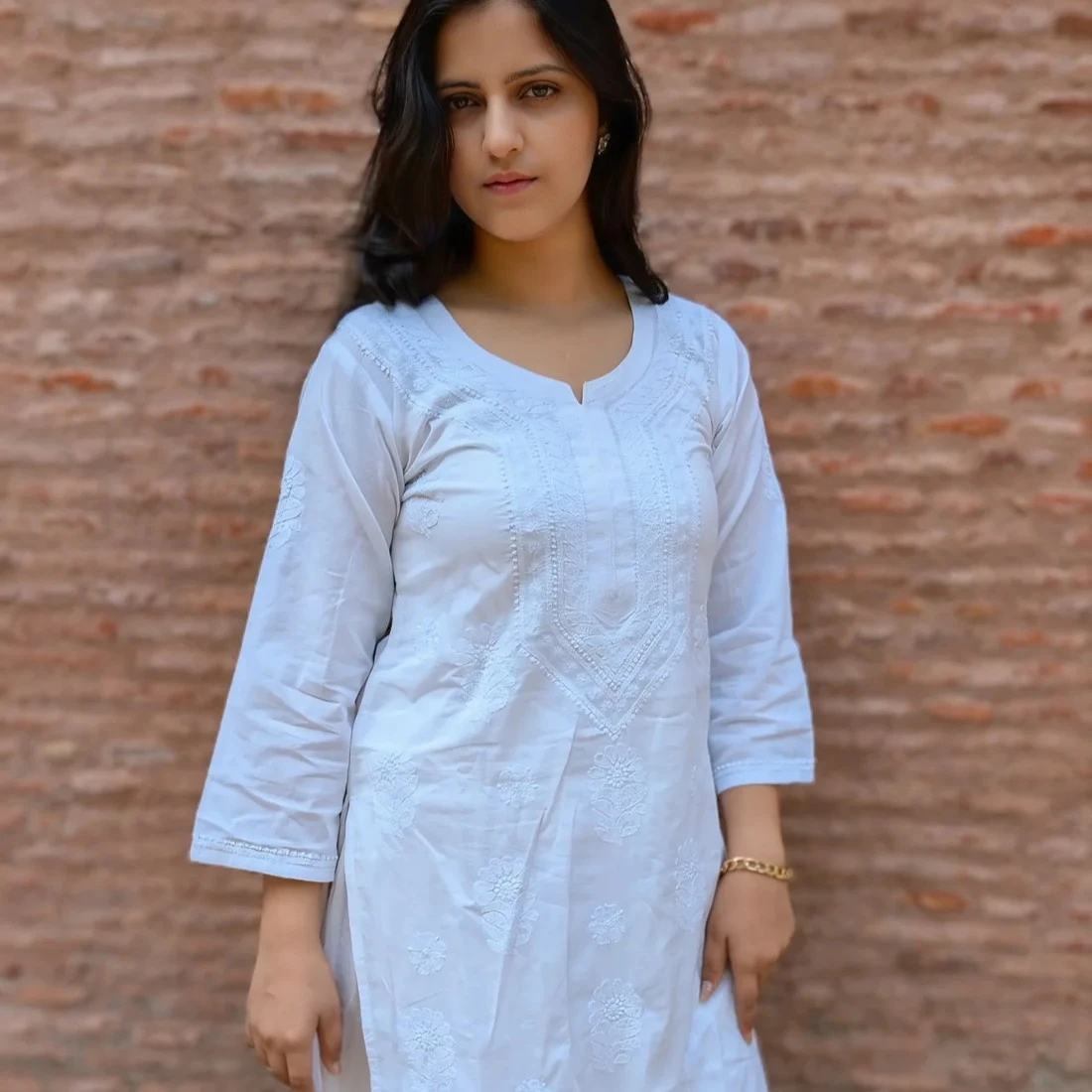 Grace meets comfort in the Shabnam Chikankari Mulmul Straight Kurta, crafted from airy and breathable mulmul cotton. Finished with intricate chikankari handwork, this long straight-fit kurta is a perfect blend of elegance and everyday wearability.