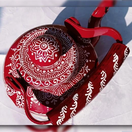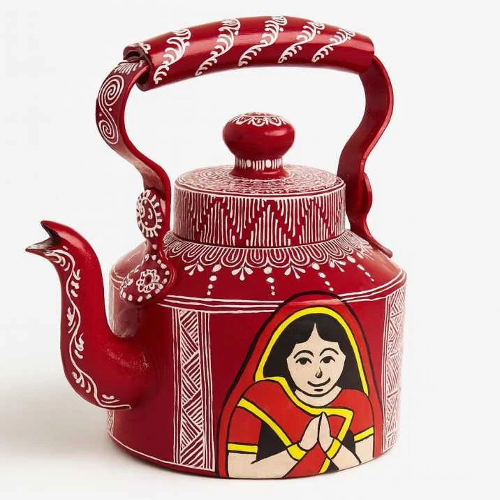Experience the charm of traditional Uttarakhand Aipan Art with this beautifully hand-painted Decorative Tea Kettle. Each kettle is meticulously designed with fine patterns, folk-style motifs and bright red color, making it a standout piece for any décor setup.