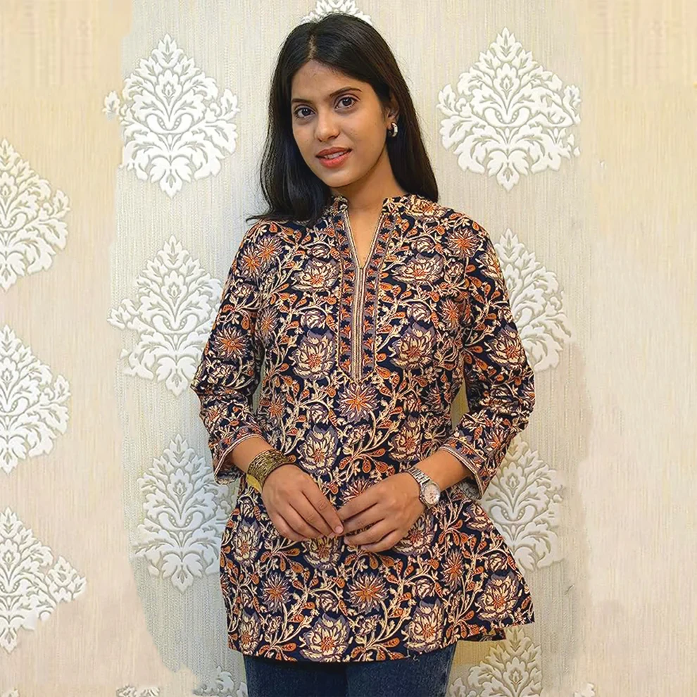 “Authentic printed top in beautiful Kalamkari design… printed on pure 100% cotton fabric.”