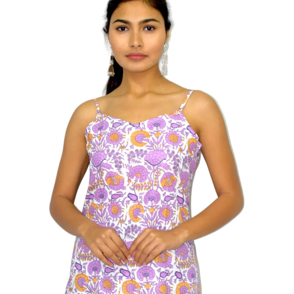 Design: Sleeveless cut with traditional hand block prints.