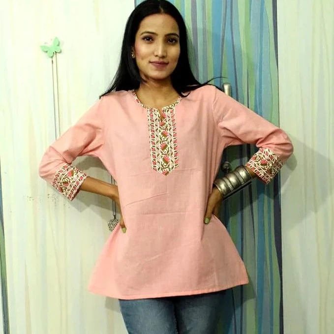 Pair this pink kurti top with white or cream bottoms for a clean contrast. Add flat sandals or juttis and minimal jewellery for an effortlessly chic look. For a fusion twist, wear it with denim jeans and a light scarf.