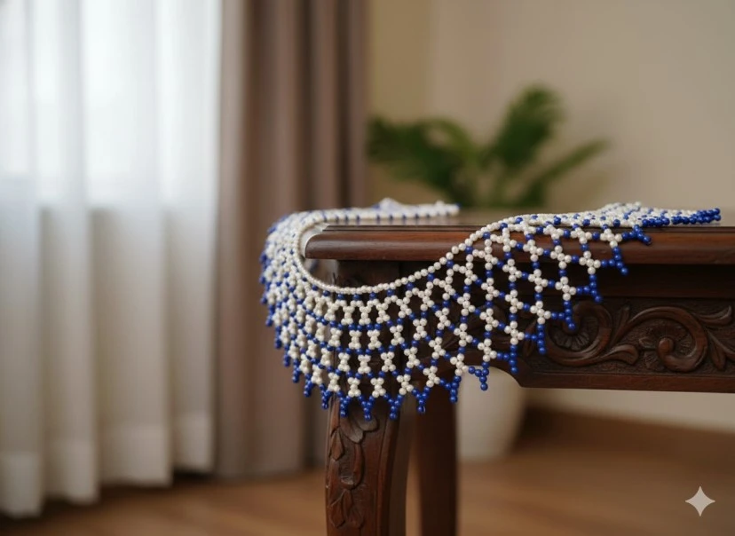 Rangoli) is a handcrafted decorative item made from shiny plastic pearl beads
