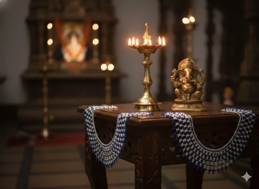 to decorate temples (Mandir), lamps (Diyas), and as a Toran (door