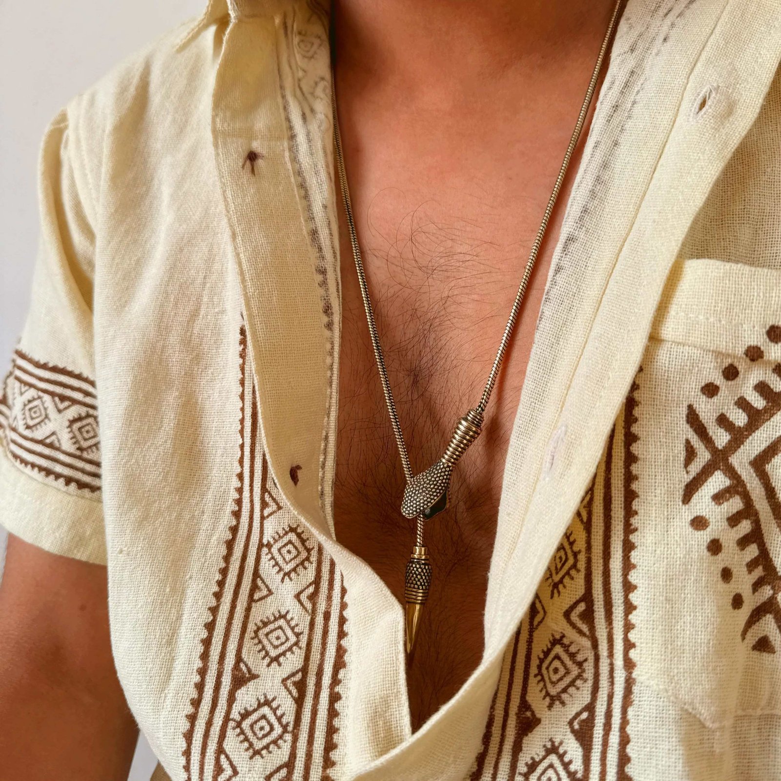 Add a bold edge to your style with the Atypical Snake Chain for Men, crafted from pure brass and designed to be completely nickel-free for safe everyday wear. This unique snake wrap necklace is adjustable in length, giving you the flexibility to style it your way – whether layered, loose, or close to the neckline.