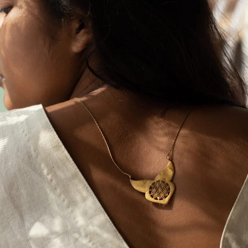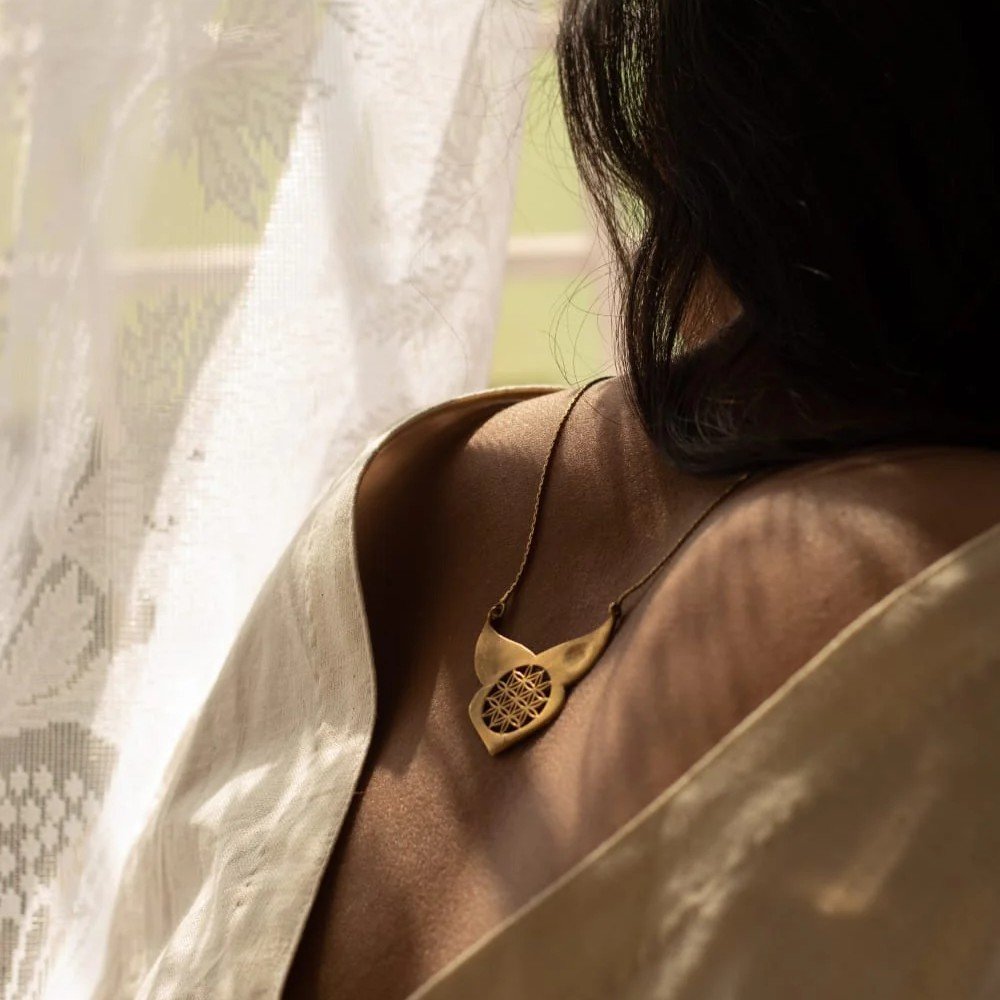 Lightweight and graceful, this brass necklace is perfect for women who want to feel confident and radiant without heavy layers of metal or synthetic materials.