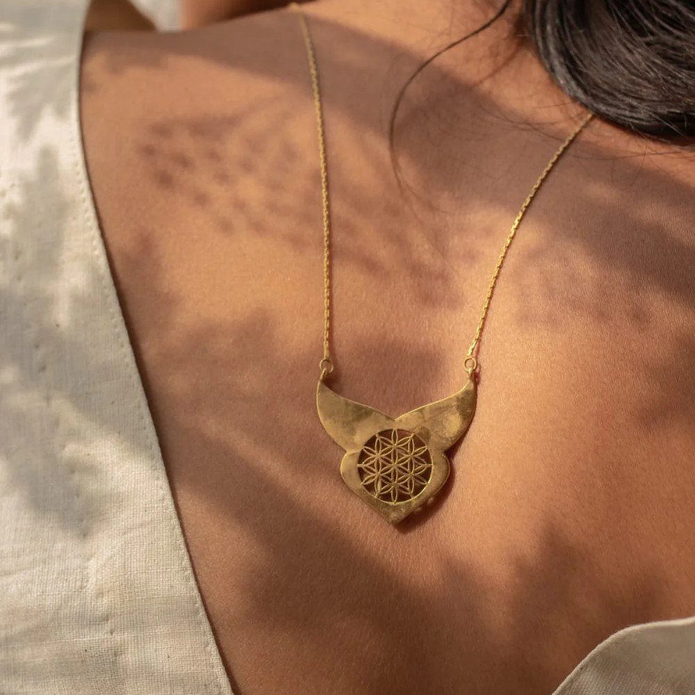 Aurelia Mandala Necklace – a beautifully crafted piece inspired by sacred geometry.