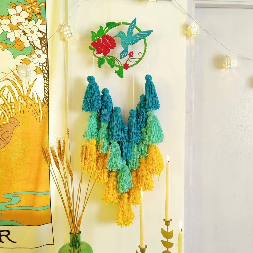 Bring whimsical charm and boho elegance into your space with the Ava Bird Tassel Dreamcatcher. Made from wool and MDF, this multi-color dreamcatcher features delicate tassels and a vibrant design, perfect for brightening any room. Ideal as a thoughtful gift or a statement piece for your own home décor.