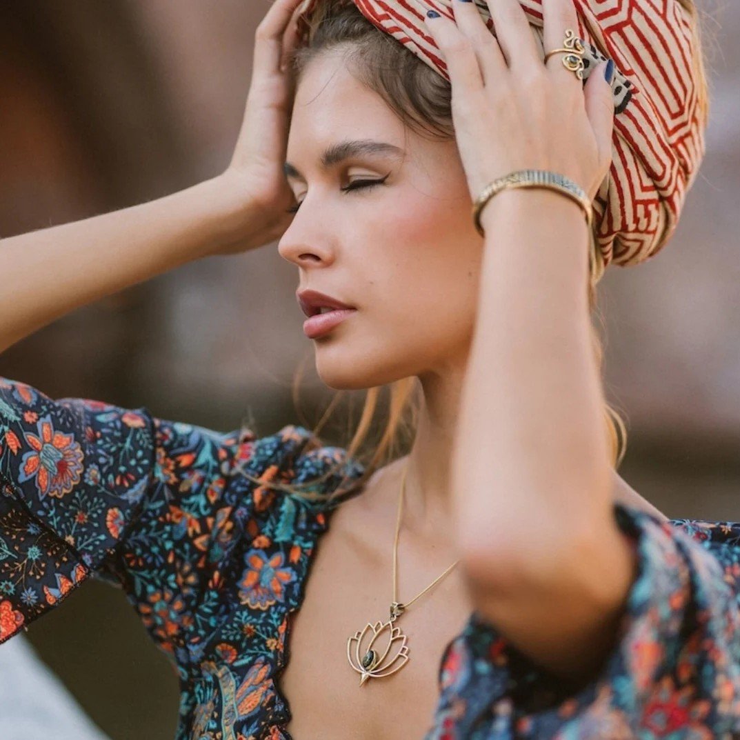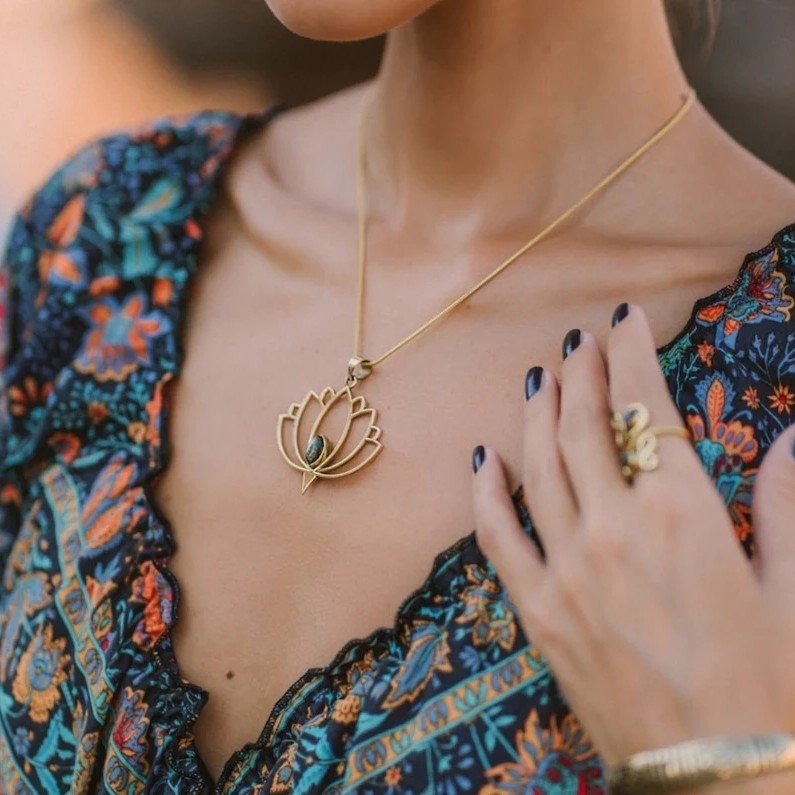 Add a touch of Bohemian elegance to your style with our Blooming Serenity Pendant with Chain. Inspired by the Padma (lotus), this pendant symbolizes purity, rebirth, and spiritual growth—making it a meaningful accessory for everyday wear or special occasions.