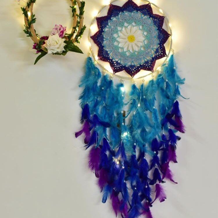 Serene Blue Presence — Infused with calming hues, this dreamcatcher brings serene oceanic vibes and boho elegance to bedrooms, nooks, or creative spaces.