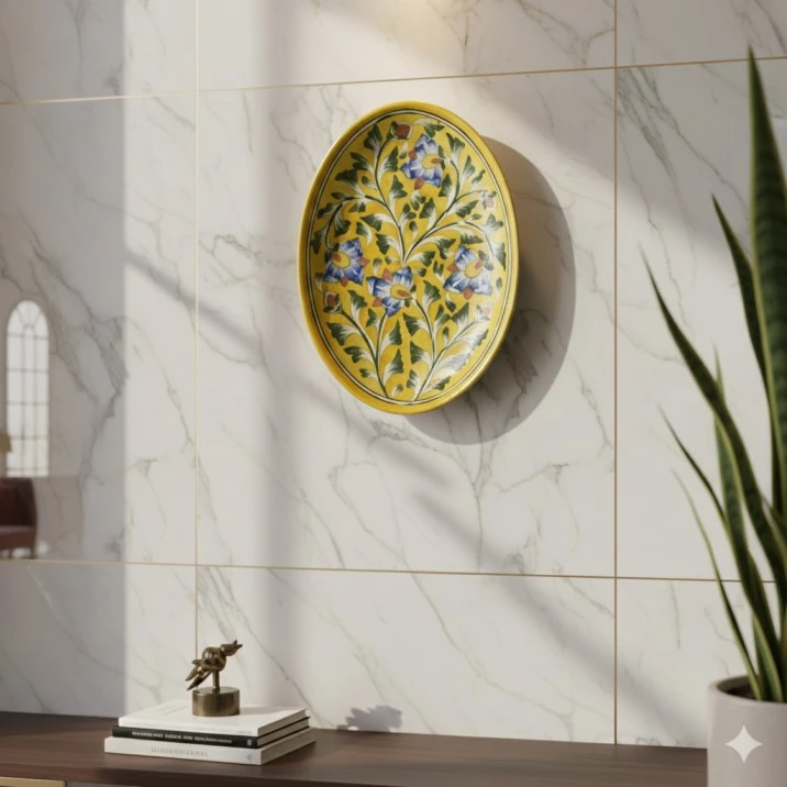 Elevate your living space with a piece of living history. This exquisite 10-inch wall decor is a masterpiece of the world-renowned Jaipur Blue Pottery tradition. While its soul is Turko-Persian, its craftsmanship is pure Rajasthani elegance.