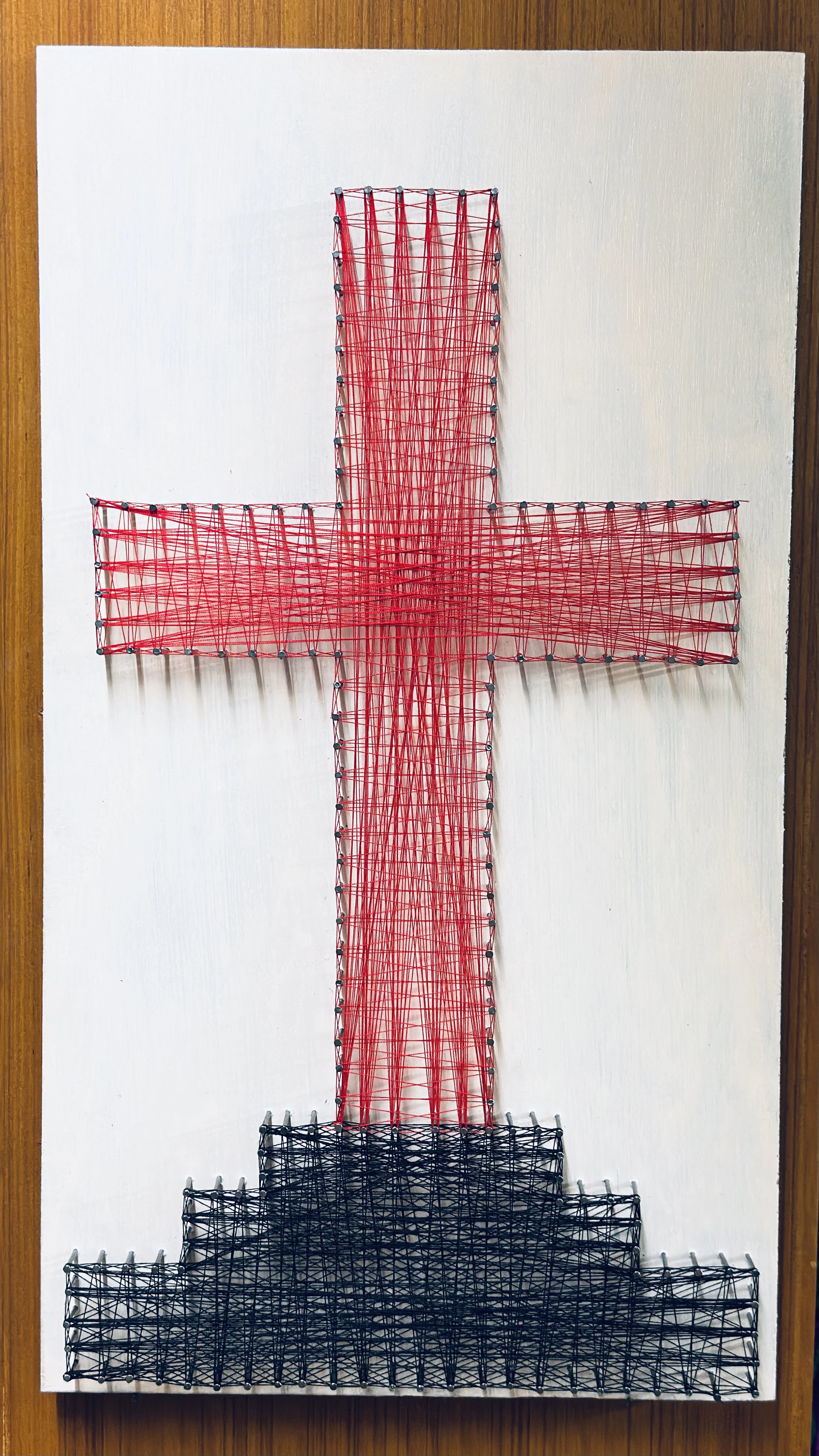 "The Holy Thread: Calvary Cross String Art — A Tapestry of Virtue"
