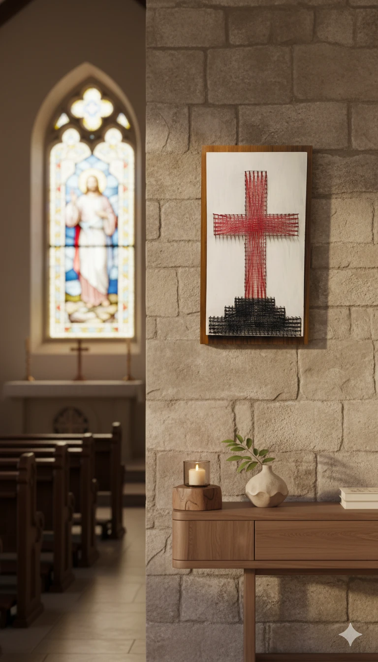 Inspired by the profound peace and sacred atmosphere of the church, this exclusive thread art piece serves as a powerful and tranquil focal point for your home, office, or private prayer space. Created under the shadow of divine presence, every thread woven is a testament to devotion.