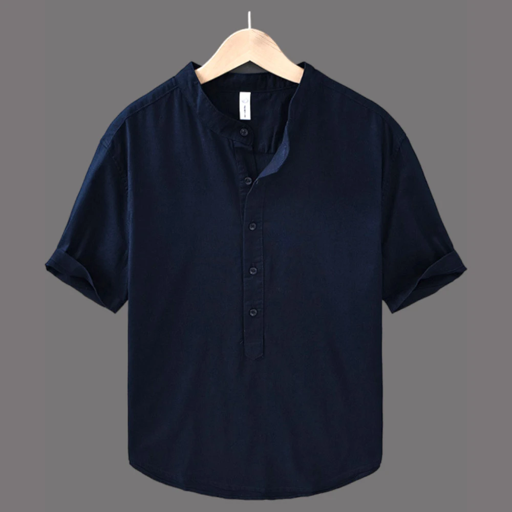 Redefine relaxed elegance with this Classic Navy Blue Cotton Kurta Shirt. Crafted from premium cotton, it features a stand-up collar, half sleeves, and a loose, comfortable fit that suits everyday wear and casual gatherings. The deep navy color adds a sophisticated touch, making it an ideal choice for pairing with jeans, chinos, or ethnic bottoms.