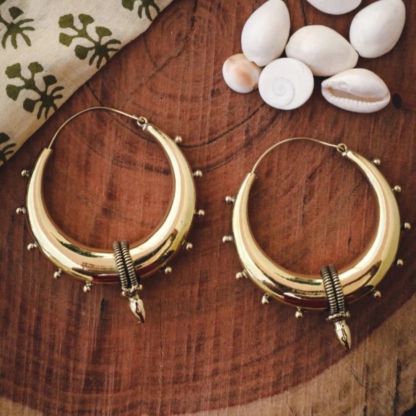 Bold Design: These earrings feature a chunky crescent shape with tribal-inspired detailing, making a bold statement.