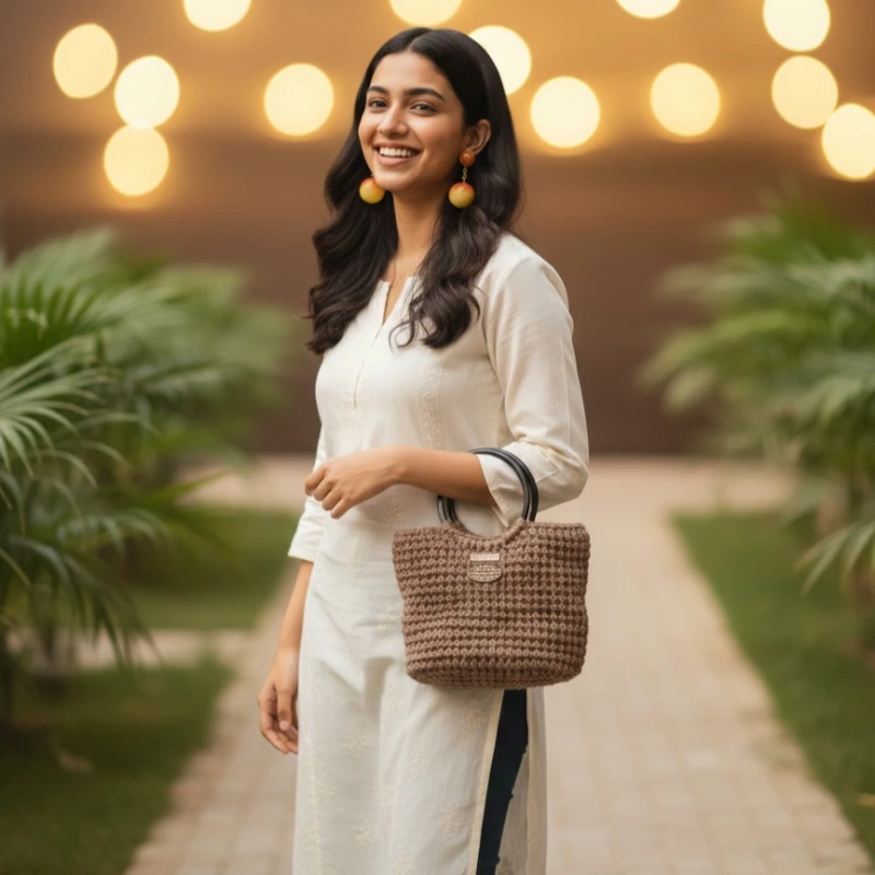 The structured body, combined with a modern round handle, gives it a classy yet boho appeal. Ideal for shopping, brunches, travel, or casual outings.