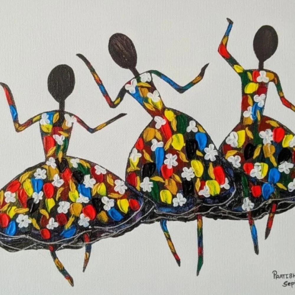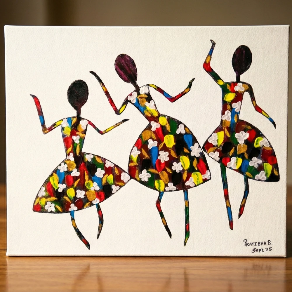 Bring movement, joy, and artistic charm to your space with this Handcrafted Dancing Dolls Figurine Abstract Painting (10" × 12").