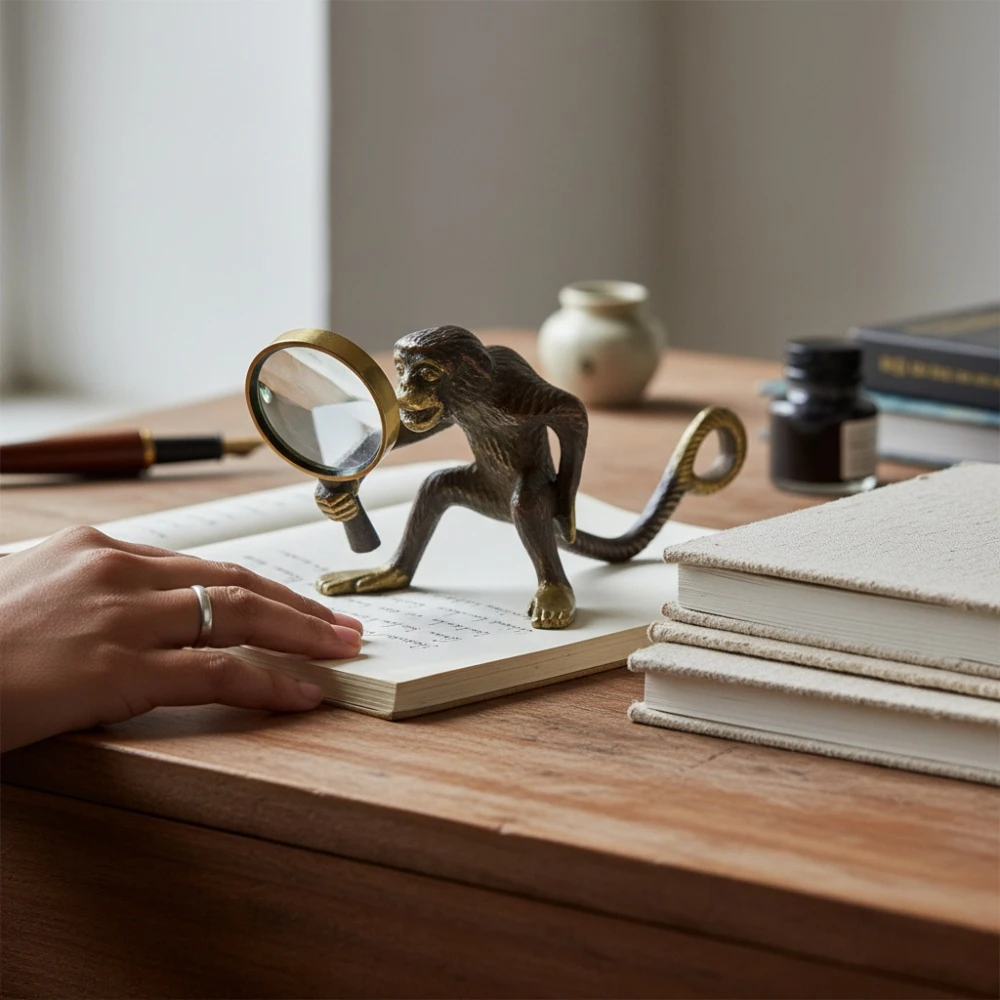 🐒 Unique Monkey Design – Playful monkey holding a magnifying glass adds a fun and quirky touch